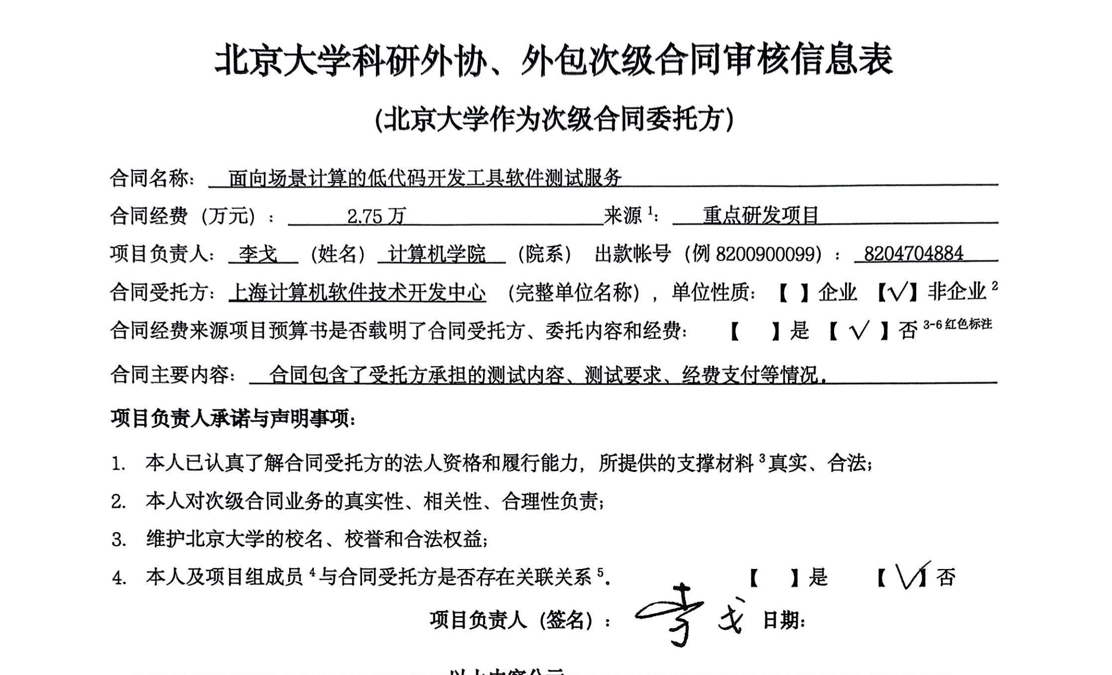 根据《关于北京大学理工科科研次级合同管理的通知》,现将北京大学理工科科研次级合同“面向场景计算的低代码开发工具软件测试服务”相关内容予以公示。