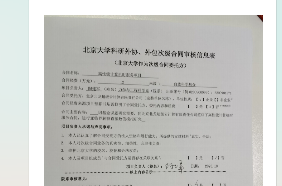 根据《关于北京大学理工科科研次级合同管理的通知》,现将北京大学理工科科研次级合同“高性能计算机时服务项目”相关内容予以公示。
